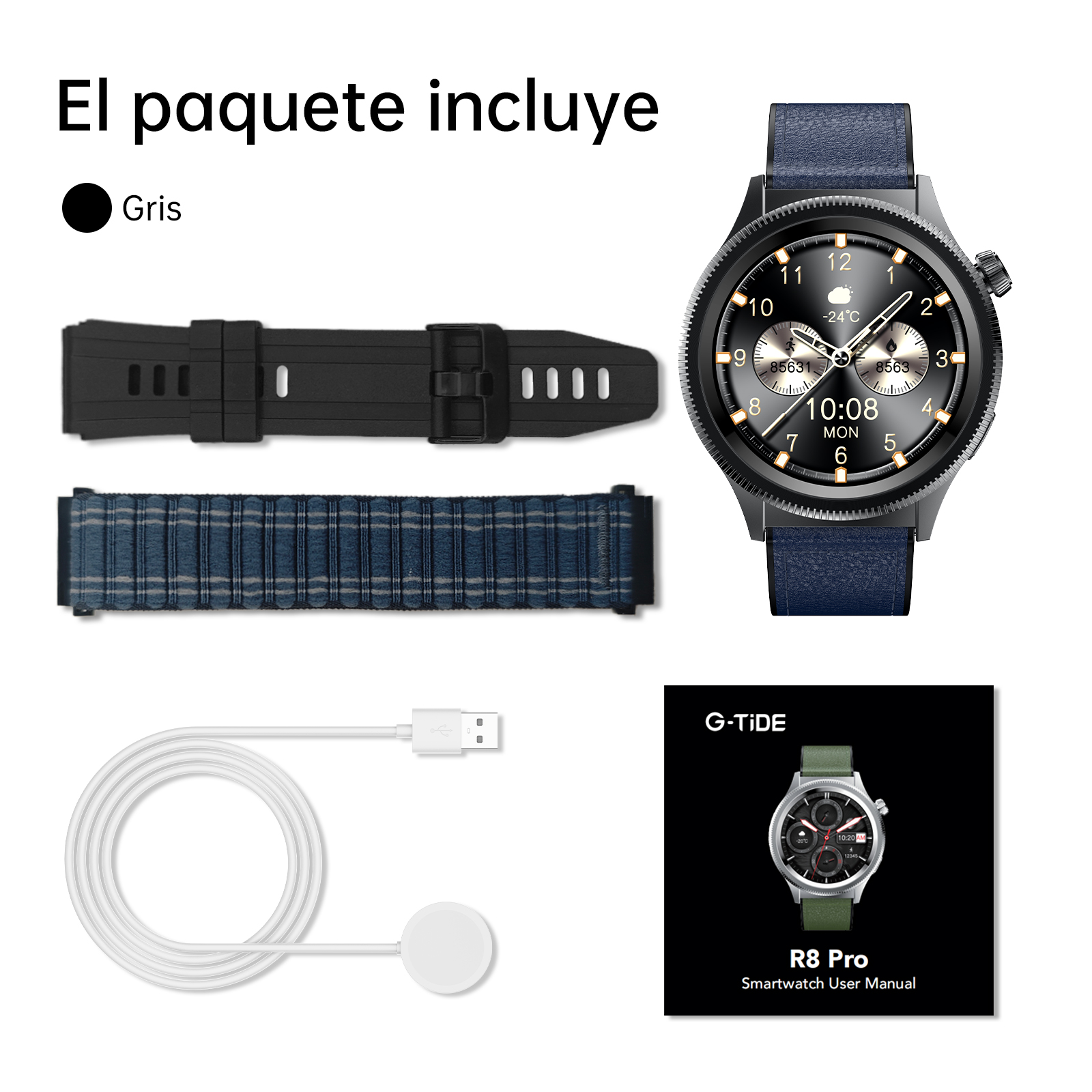Relógio / Cabo de carregamento / Pulseira de relógio * 3 / Manual do usuário