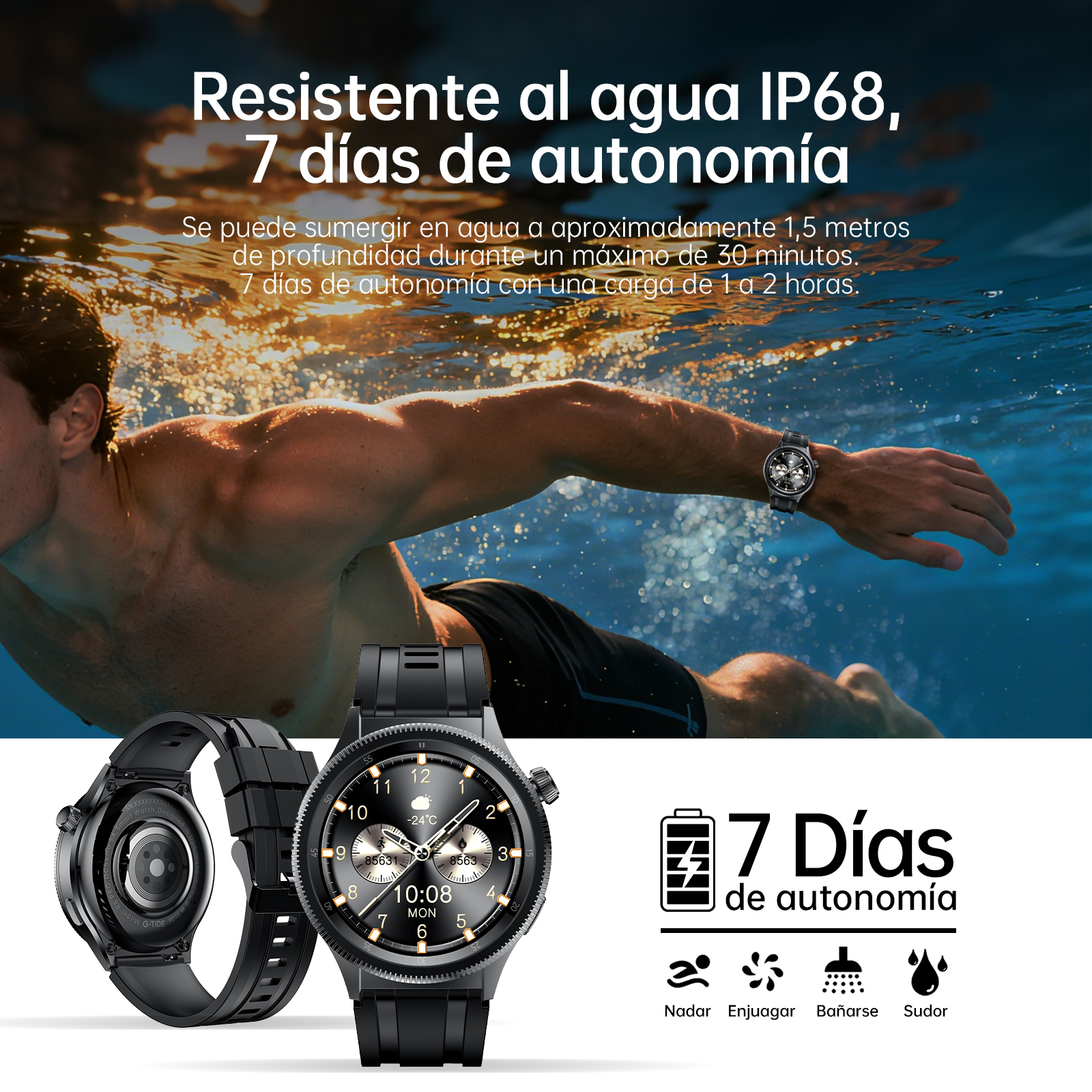 Resistência à água IP68 e 2 jogos relaxantes